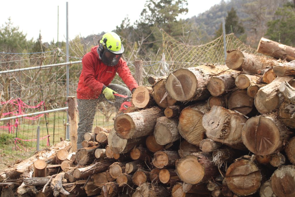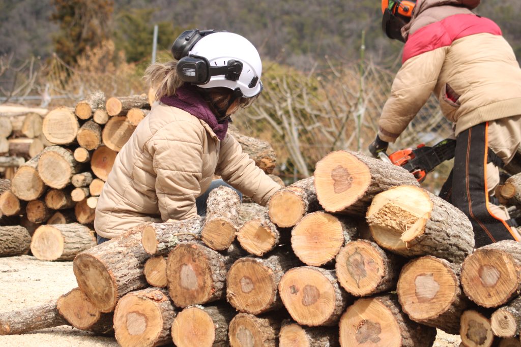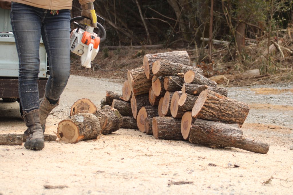 この日の作業は、先週新たに伐採したクヌギの木、4本の処理からスタート。